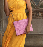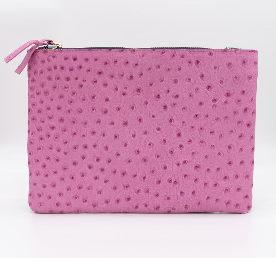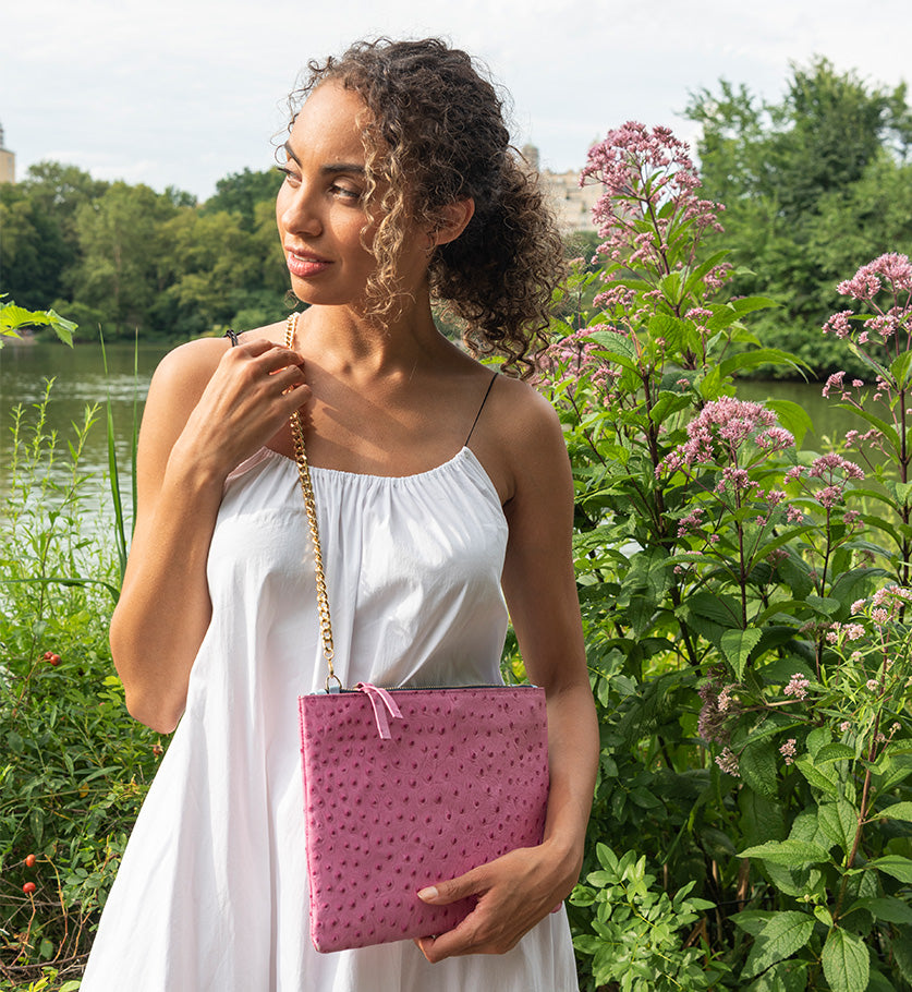 This flirty, vibrant conversation starter was destined to be the center of attention, so be prepared for non-stop compliments. With its bubble gum pink hue and ostrich embossed texture, it’s an instant mood booster. We dare you not to smile when it’s in your hands.