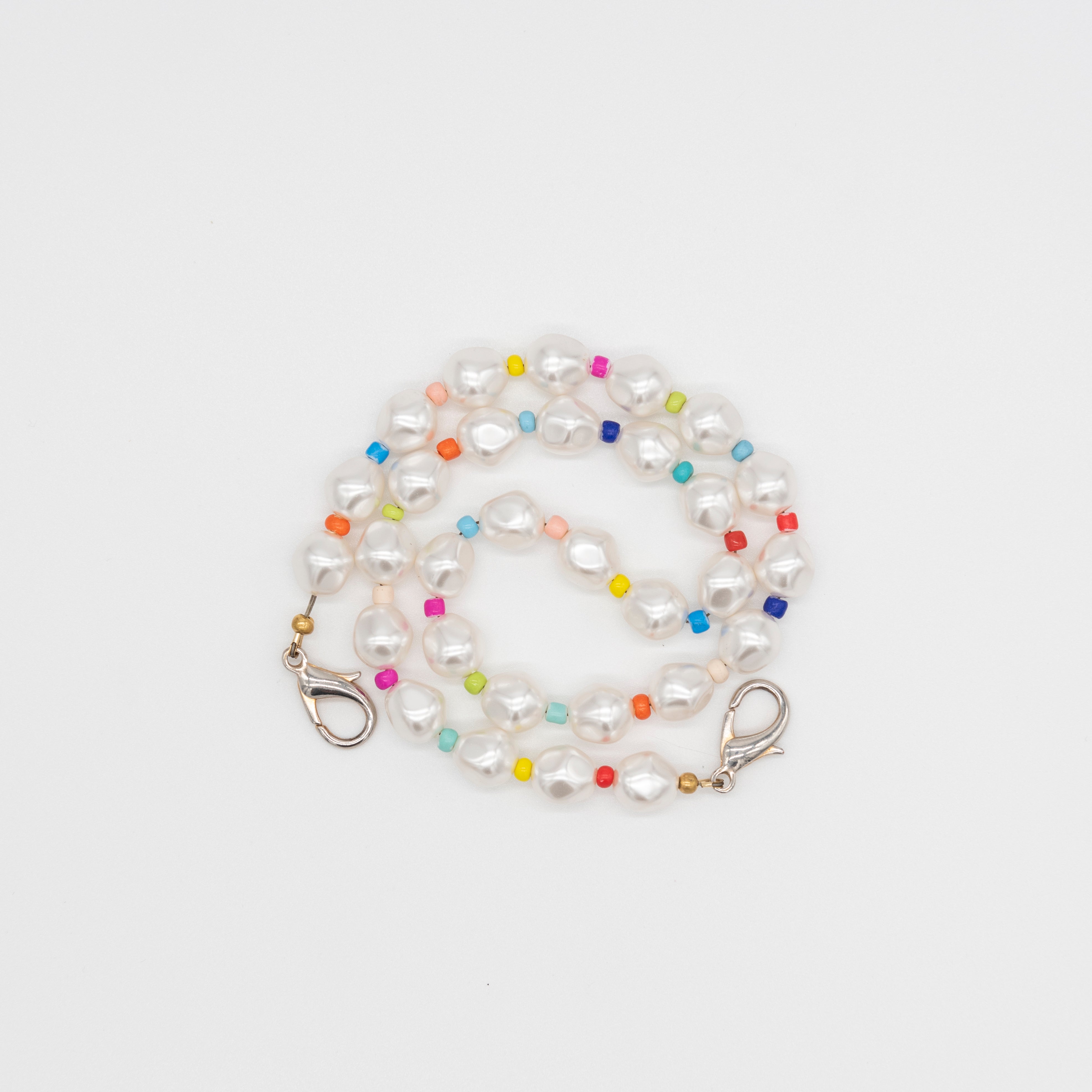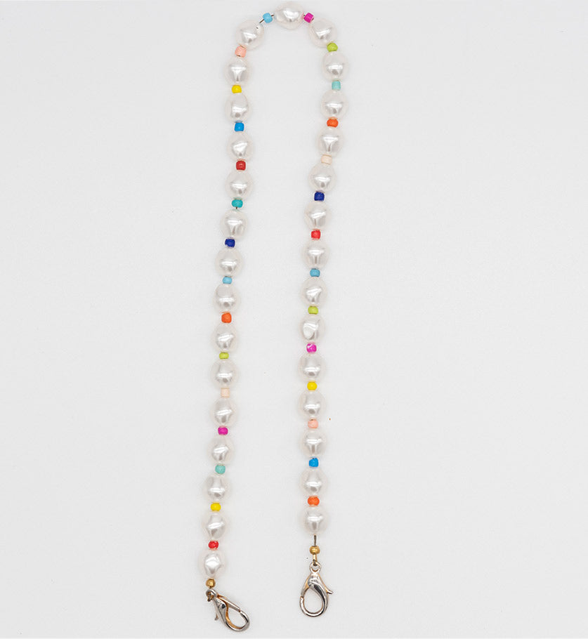 Add a playful accent to your handbag with our new Pearl Strap. Made with Swarovski imitation pearls and multi-colored beads, this shoulder strap transforms your handbag into the perfect elegantly-cool Summer accessory. The best part? You can also wear it as a necklace!